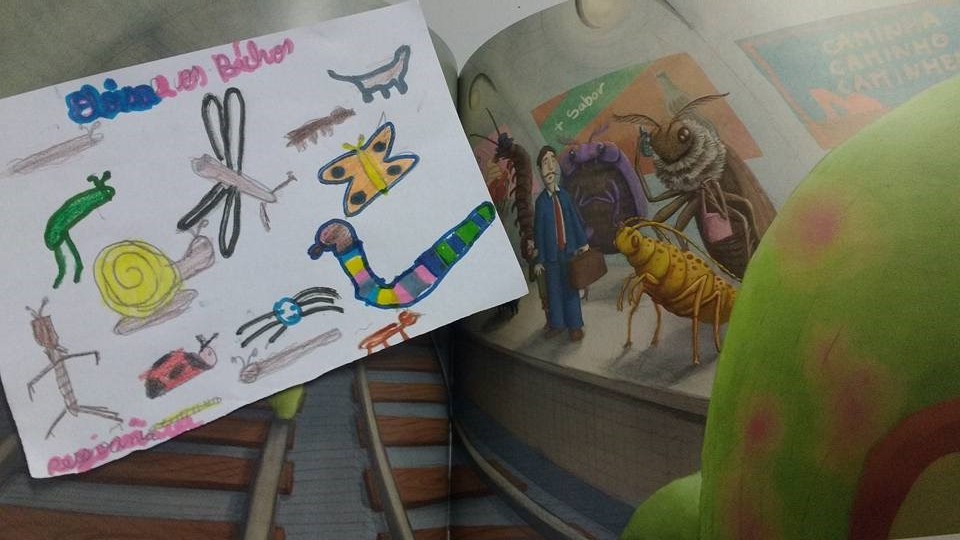 Depois de ler, refletir, as crianças fizeram interpretação oral, e ilustrações, e uma lista dos animais que aparecem no livro, explicando como são as características dos seres invertebrados.